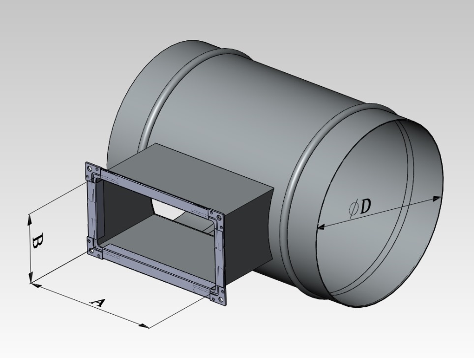 Тройник круглого сечения с прямоугольной врезкой