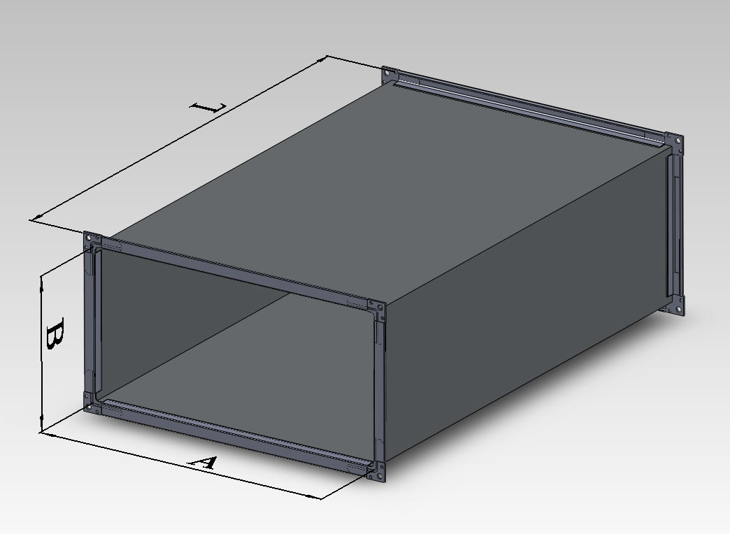 Воздуховод - это прямой участок вентиляционного канала, основной элемент сети коммуникаций. Изготовление воздуховодов осуществляется из оцинкованной стали. Воздуховоды прямоугольной формы очень удобны и востребованы, их монтаж достаточно прост и не занимает много времени. Стыковка с другими деталями и комплектующими производится фланцевым способом.